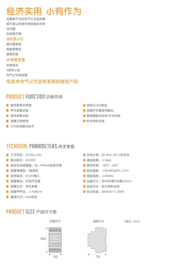 AFD2-X系列剩余电流式火灾监控探测器 分体导轨式