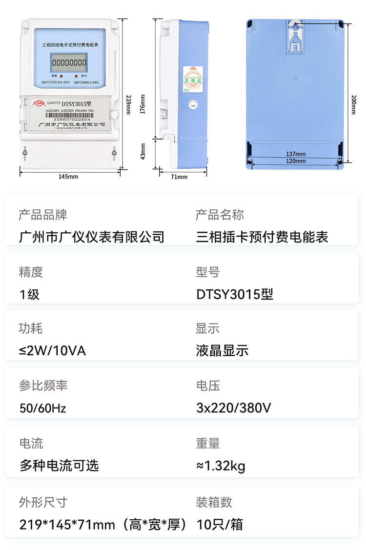 DTSY3015型三相四线电子式预付费电能表